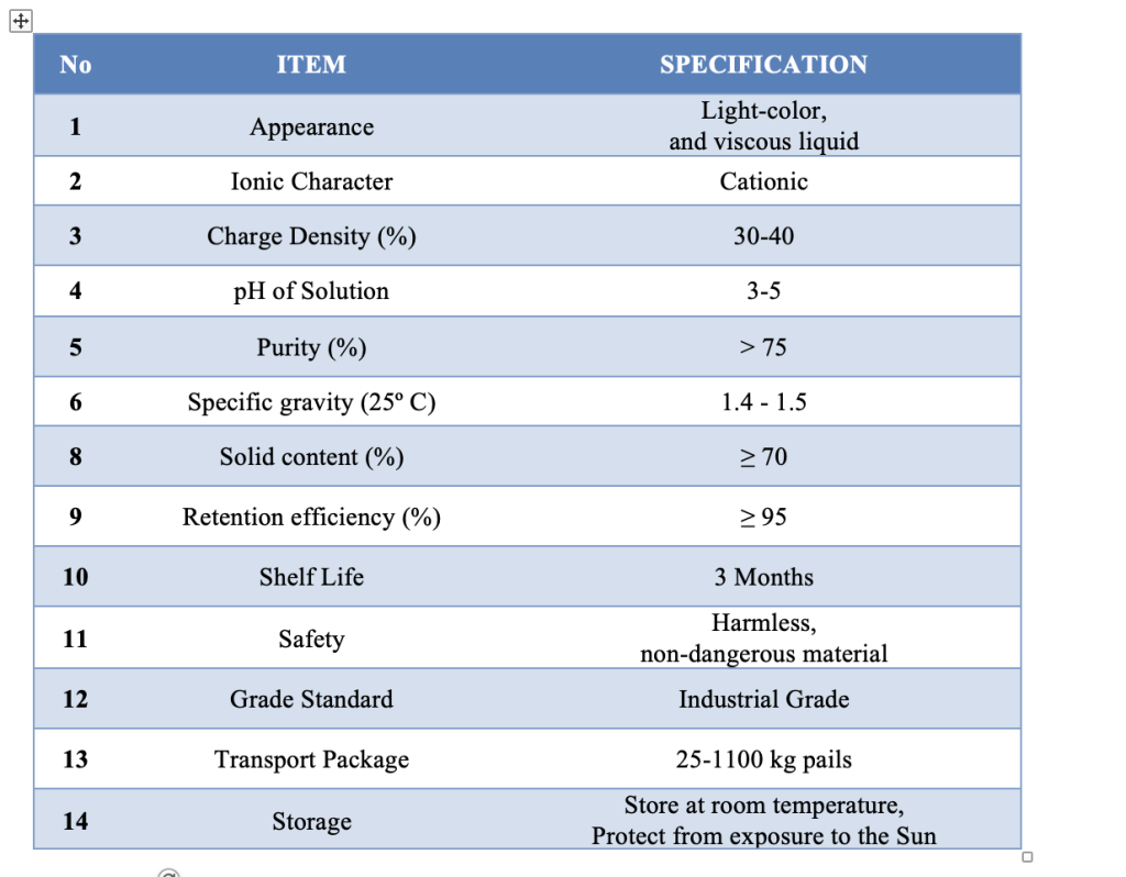 هدف تولید ریتنشن اید (Retention Aid) در این شرکت بهبود شرایط بازیابی آب در صنایع کاغذ و مقواسازی است. از نقطه نظر فنی، این محصول با محتوای جامدات 38 تا 42 درصد، ویسکوزیته برابر با 600 mpa.s، میزان pH در محدوده 4 تا 7، شار کاتیونی 20 تا 30 درصد و قابلیت حلالیت در مدت زمان 10 تا 30 دقیقه در آب بخوبی می تواند در صنایع مورد استفاده قرار گیرد.
